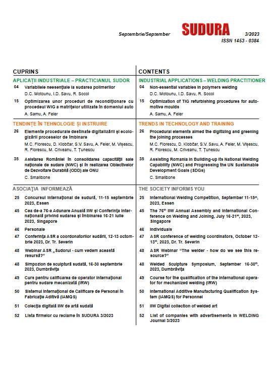 3. Elemente procedurale destinate digitalizării și ecologizării proceselor de îmbinare / Procedural elements aimed at the digitizing and greening of the joining processes