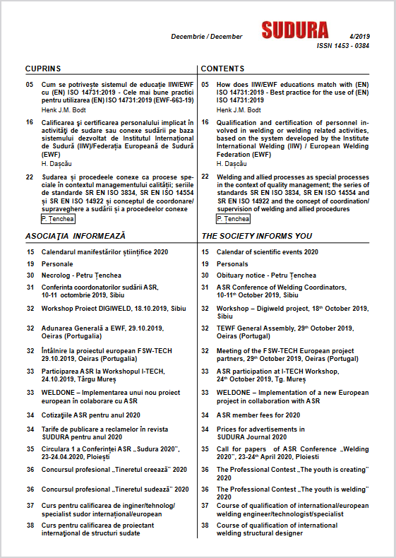 Curs pentru calificarea de Proiectant internaţional de structuri sudate nivel standard (IWSD-S)
